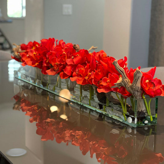 Economize 47%Modern House 48" Glass Planter with Red Cymbidiums